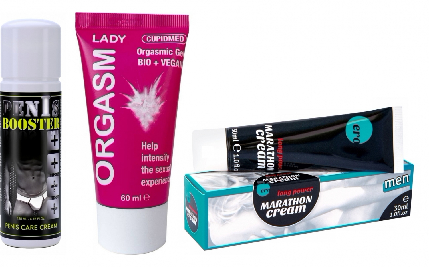 Cum se folosesc împreună: începeți cu o mângâiere blândă – utilizați gelul adresat prietenei pe zonele receptive pentru a activa impresiile de încălzire și furnicături care intensifică preludiul. Pentru el, folosiți crema Booster la frecție ușor pe mărimea penisului pentru a obține senzația de fermitate și volum; crema Marathon aplicată punctual premergător acțiunii susține la prelungirea performanței.