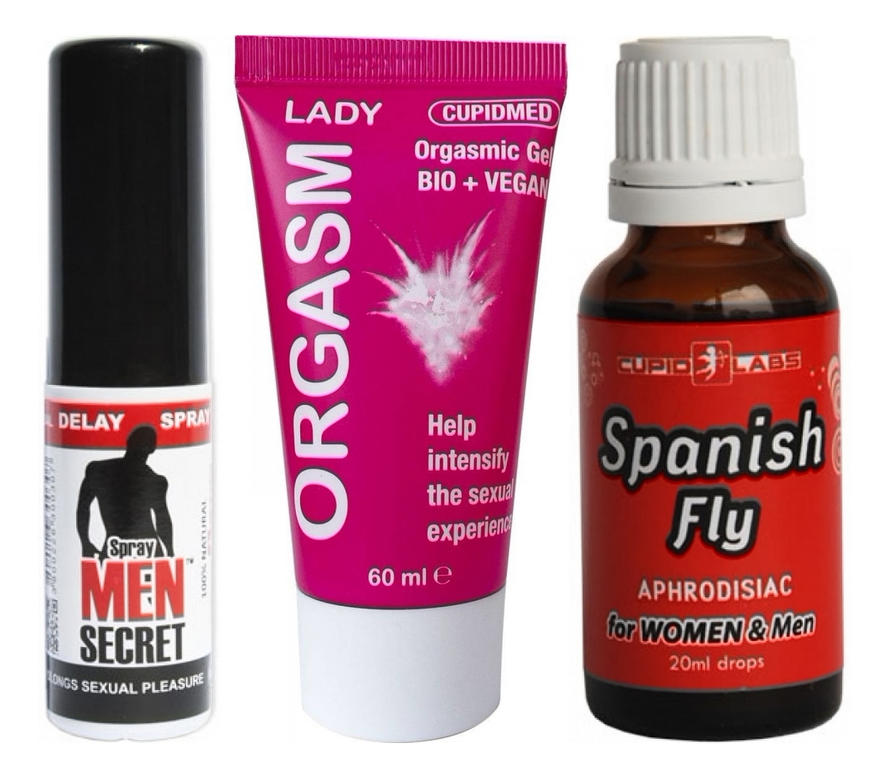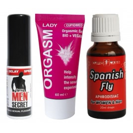 Detalii produs: Men Secret Spray 15 ml (spray pentru bărbați) scade sensibilitatea locală și ajută la controlul actului ejaculării, dând încredere în performanță. Gel Orgasm Lady 60 ml (gel pentru femei) are textură plăcută, hipoalergenică, minus parfum, oferind emoții de încălzire și creșterea receptivității. Picăturile Spanish Fly 20 ml sunt un concentrat natural pentru stârnirea libidoului, potrivit atât pentru femei, cât și pentru bărbați.