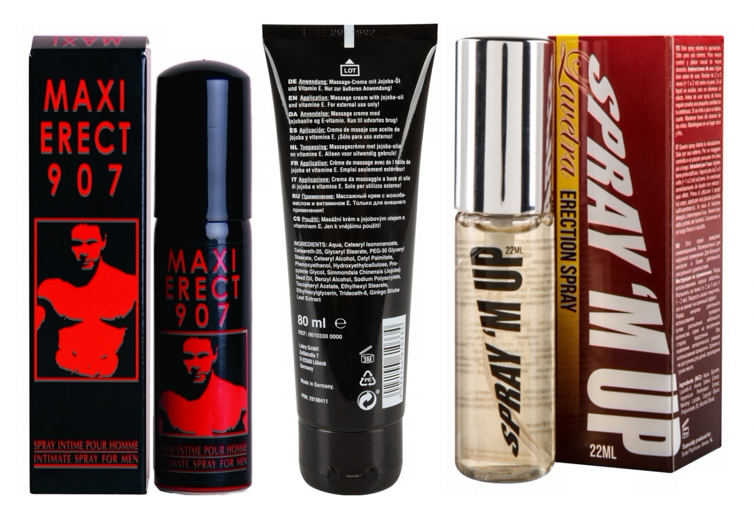 Maxi Sculare 907 (25 ml, Ruf): spray cu acțiune rapidă, care combină compoziție cu concluzie de încălzire (ex. chili) și plante cu caracteristici energizante (ex. cimbru alb). Restrânge receptivitatea ușor, favorizează fermitatea și poate întârzia timpul ejaculării pentru partide mai lungi; senzația simpatică de furnicături poate dura până la aproximativ 30 de minute.