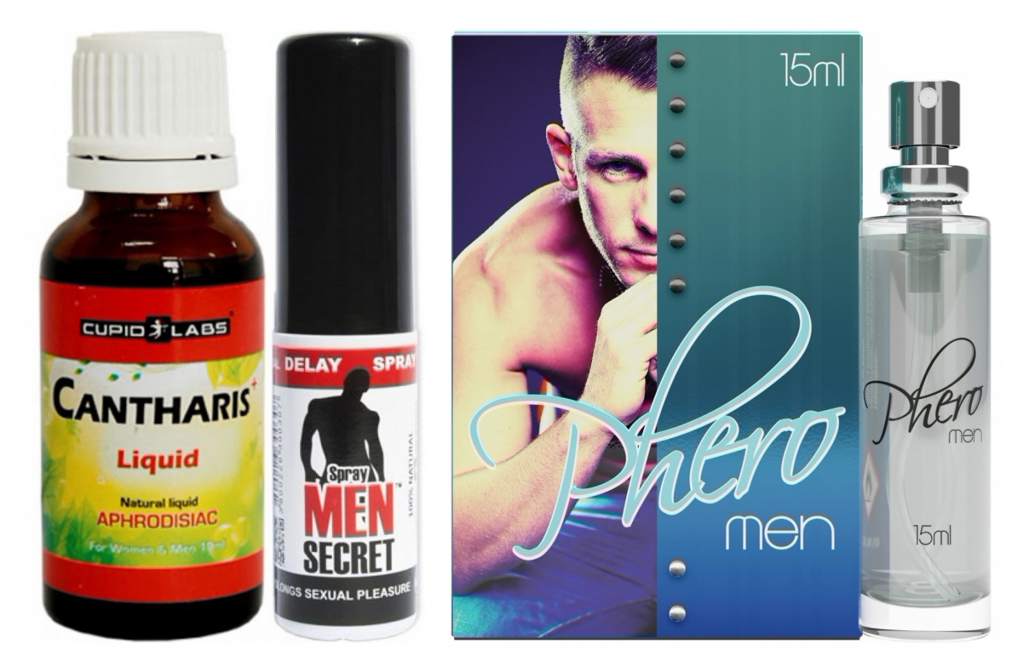 Detalii utile despre fiecare produs: parfumul (15 ml) oferă o aromă masculină care amplifică atracția și încrederea; picăturile (20 ml) au la bază extracte normale care intensifică instinctul sexual și vitalitatea excluzând urmări adverse cunoscute; spray-ul (15 ml) limitează prea multă sensibilitate și ajută la extinderea actului, cu corespunzătoare demonstrată în utilizări regulate. Toate trei se completează: aroma pregătește scena, picăturile aprind dorința, iar spray-ul permite ca timpul culminant să apară în timp dorit.