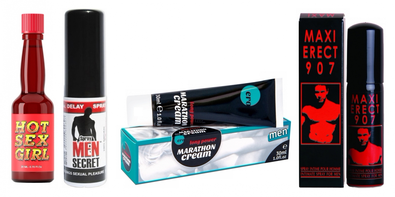 - Spray pentru erecție (Maxi Erecție): stârnește debitul sanguin, punând la dispoziție o erecție mai fermă și o senzație plăcută de încălzire ce poate dura până la circa 30 de minute; acționează rapid pentru ocazii când vreți stabilitate și intensitate.
