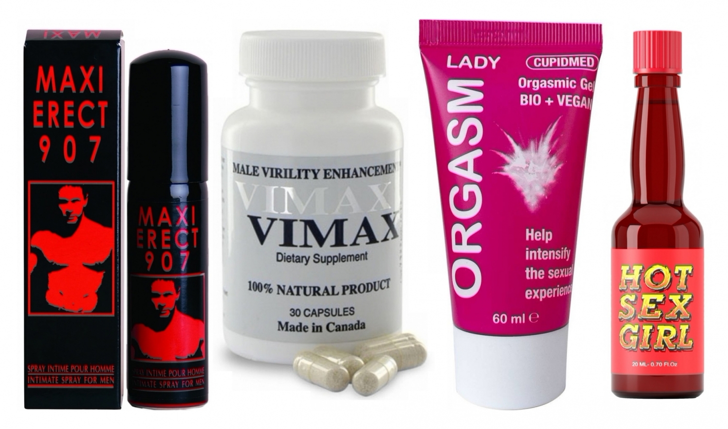 - Afrodisiac Extaz Ruf (20 ml): picături concentrate pentru stimulare grabnică a poftei și a lubrifierii naturale; conține ingrediente botanice precum scorțișoară și măghiran care tonifică și sporesc circulația. Administrare recomandată: câteva picături diluate cu apă, cu aproape 15 minute înainte de momentul intim.