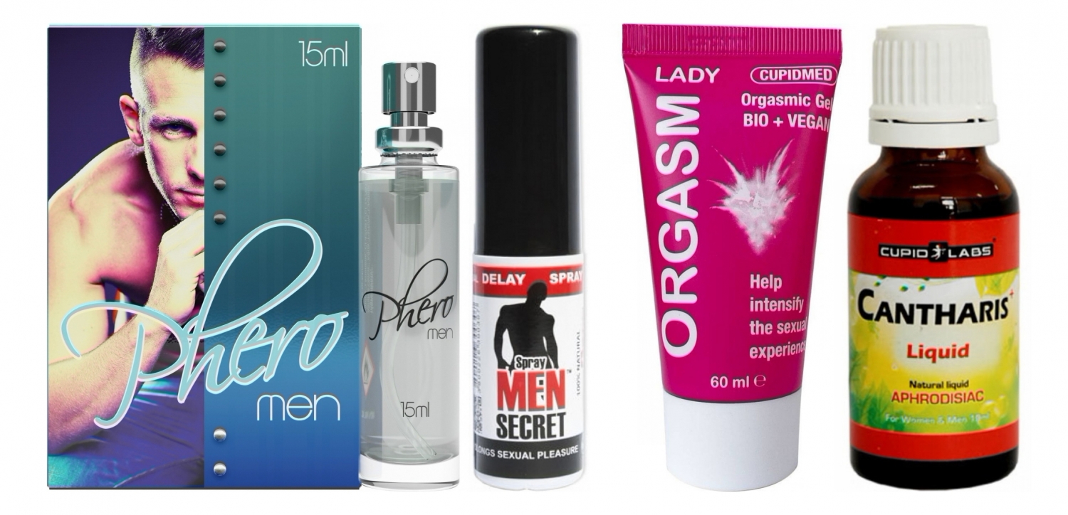 - Men Secret Spray 15 ml: soluție destinată bărbaților pentru reducerea sensibilității peniene, concepută să ajute la controlul ejaculării și la prolongația actului; produs licențiat la nivel internațional.