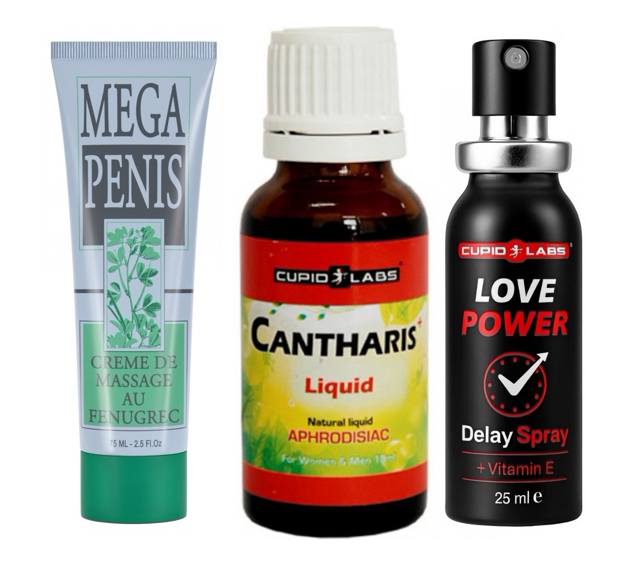 Cum să folosiţi pachetul pentru efect maxim: aplicaţi sprayul pentru întârziere cu câteva minute cândva de contact, administraţi picăturile afrodisiace cu aproximativ 30 de minute înainte sau sub limbă pentru un impuls al dorinţei, iar crema pentru creștere se foloseşte regulat, seara şi dimineaţa, înainte de timpul intim pentru senzaţie de fermitate şi volum. Combinaţia dă un echilibru între control, intensitate şi confort.
