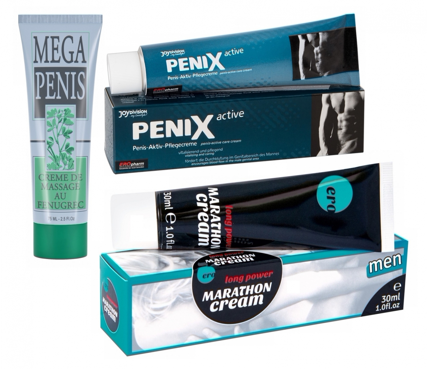 Despre crema pentru durată (Marathon Long Power): este format din extracte care susțin fluxul sanguin local și compoziție ce pot ajuta la menținerea unei erecții mai stabile pentru perioade mai lungi. Se aplică în cantitate mică, se lasă să acționeze câteva minute şi poate fi folosită cândva de contact; recomandată atenție la zonă și evitarea rănilor sau a ochilor.