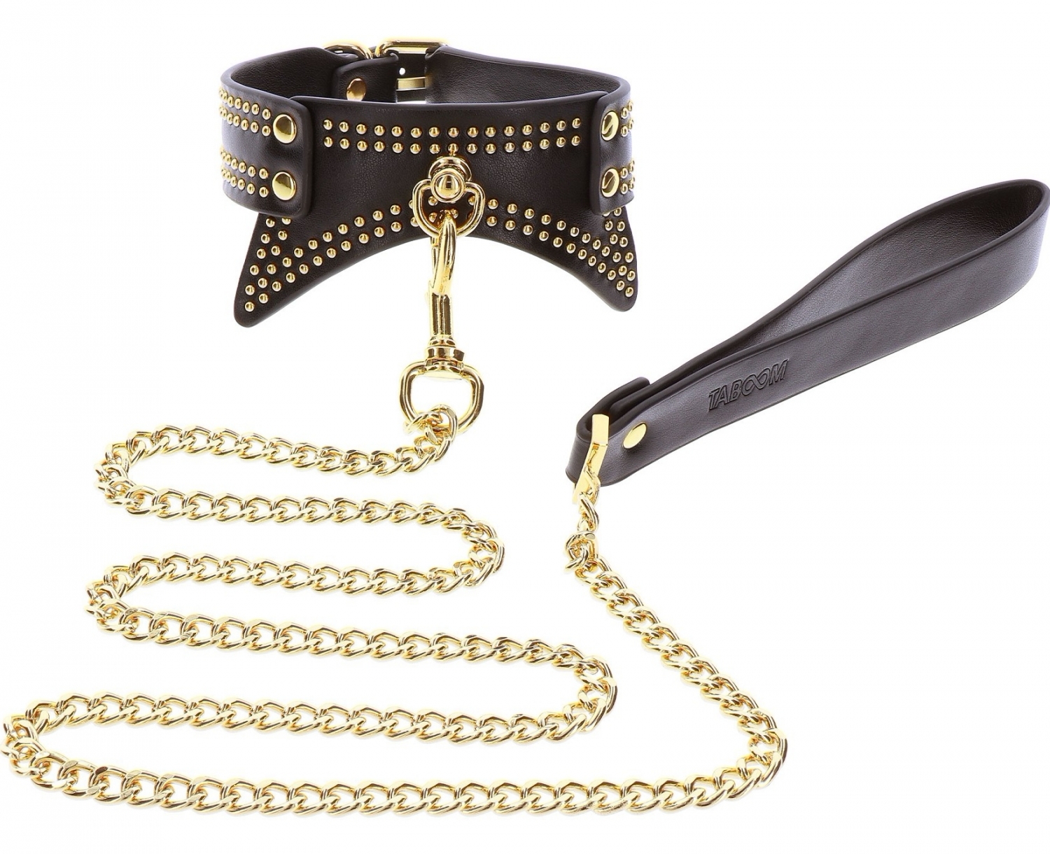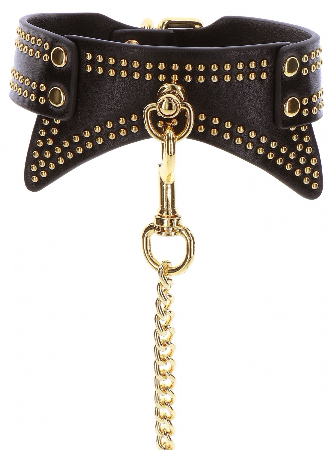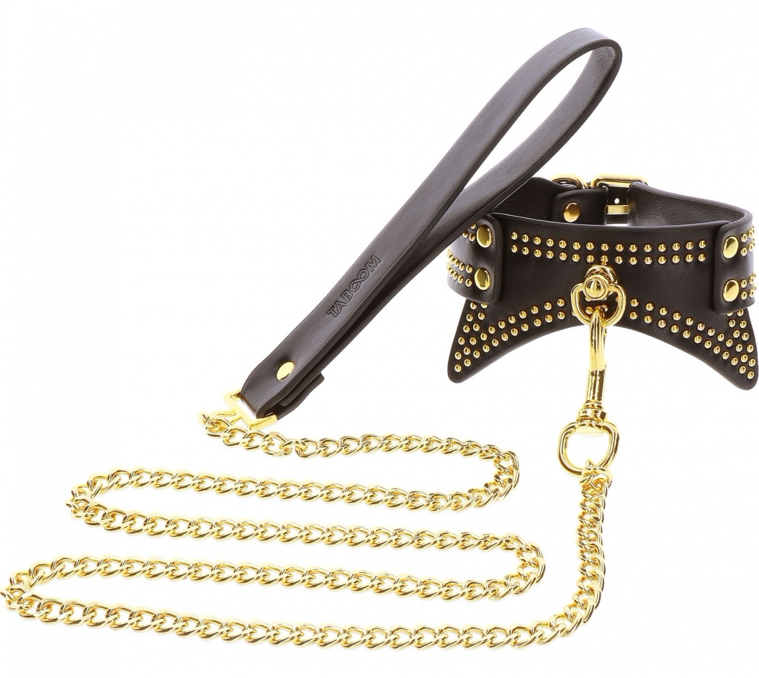 Descriere Zgardă și Lesă Taboom Vogue Negru cu Nituri Aurii: