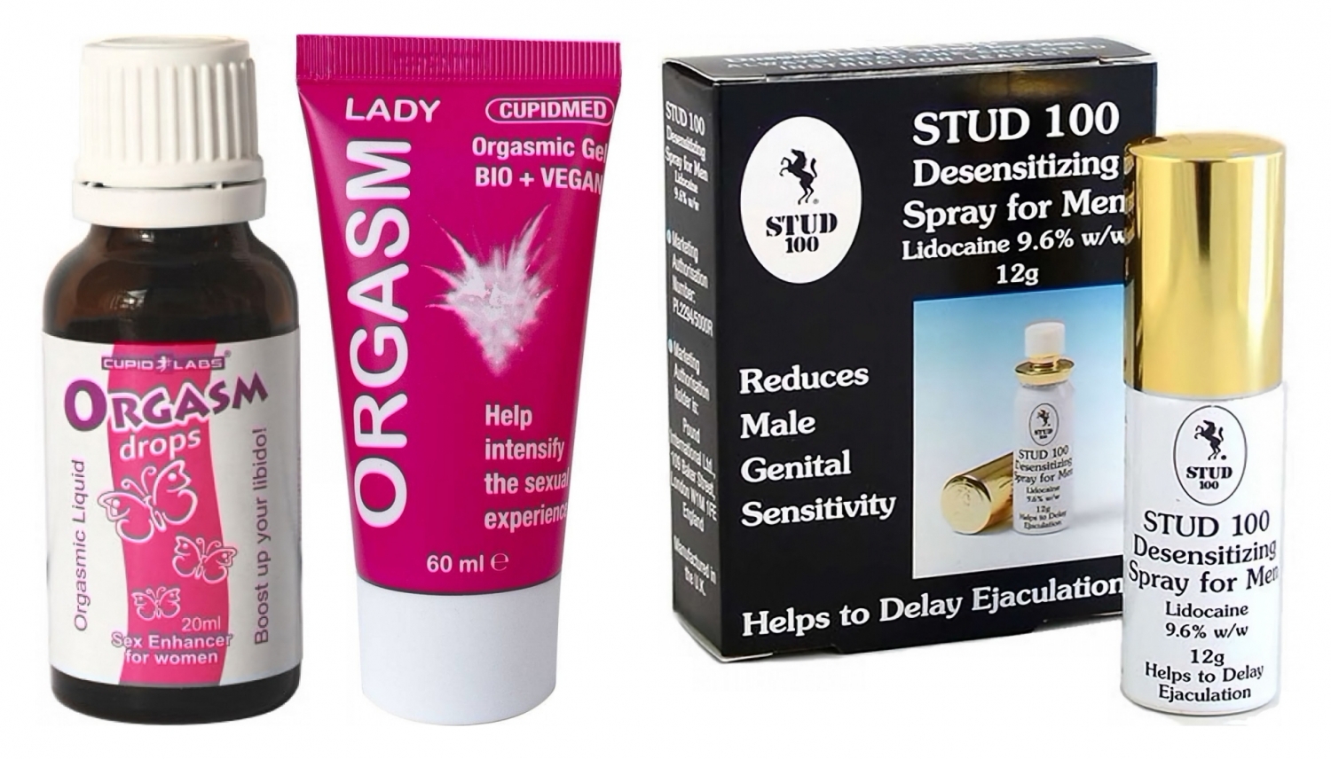 - Stud 100 Atomizator (12 g): diminuează temporar sensibilitatea prin anestezie locală controlată, mărește durata actului, efect în circa 5 minute, flacon suficient pentru numeroase pulverizări; non-toxic și folosit de bărbați care doresc mai mult control.