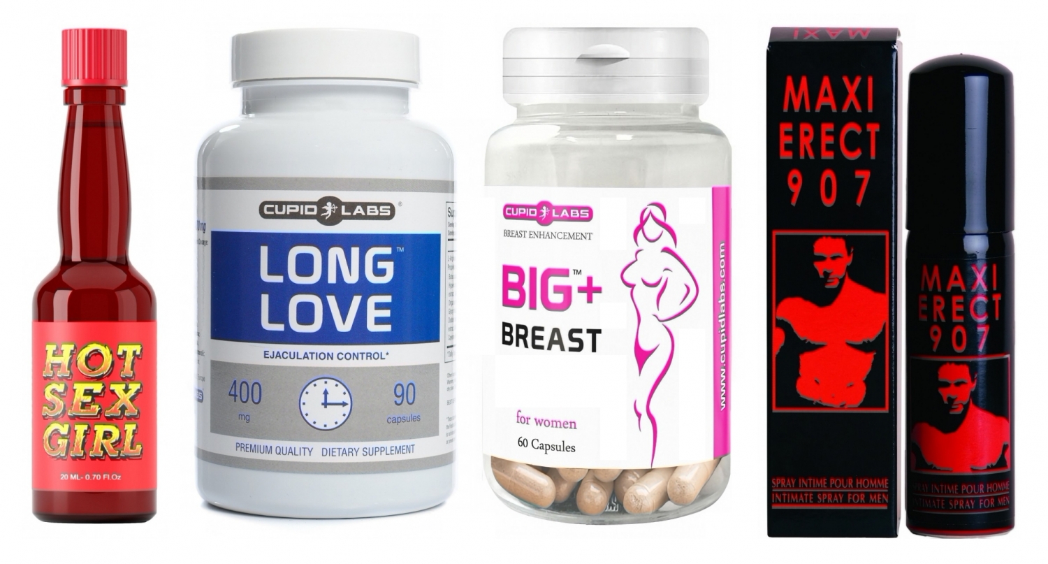 - Afrodisiac picături 20 ml: extracte reale (scorțișoară, măghiran etc) care întărâtă libidoul și favorizează ungerea vaginală. Se diluează în apă; efectul apare rapid, sporind excitația și intensitatea preludiului.
