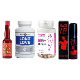 Cum se folosesc împreună: prietena ia suplimentul pentru fermitate și volum conform recomandării produsului, iar înainte de apropiere aplică 3–5 picături din afrodisiac, diluate, cu aproximativ 15 minute înainte. Jupânul utilizează pastilele pentru control carnal conform schemei indicate și pulverizează 2–3 spray-uri pe membru cu câteva minute cândva de act. Combinația compune un preludiu încărcat, sculare mai fermă și sesiuni mai lungi și concentrate pe plăcere.