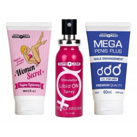 Redescoperiți chimia dintre voi cu un trio realizat pentru intensificare și confort. Acest pachet reunește un gel pentru stârnire masculină, un spray tonic pentru prietene și un gel pentru strângere vaginală, concepute să se completeze normal pentru preludiu, stimulare și partide mai satisfăcătoare.