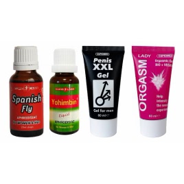 - Picături Afrodisiace Spanish Fly (20 ml): preparat pe bază de ingrediente naturale pentru stimularea dorinței; prescris 10–15 picături în lichid sau sub limbă cu 30 de minute anterior intimității.