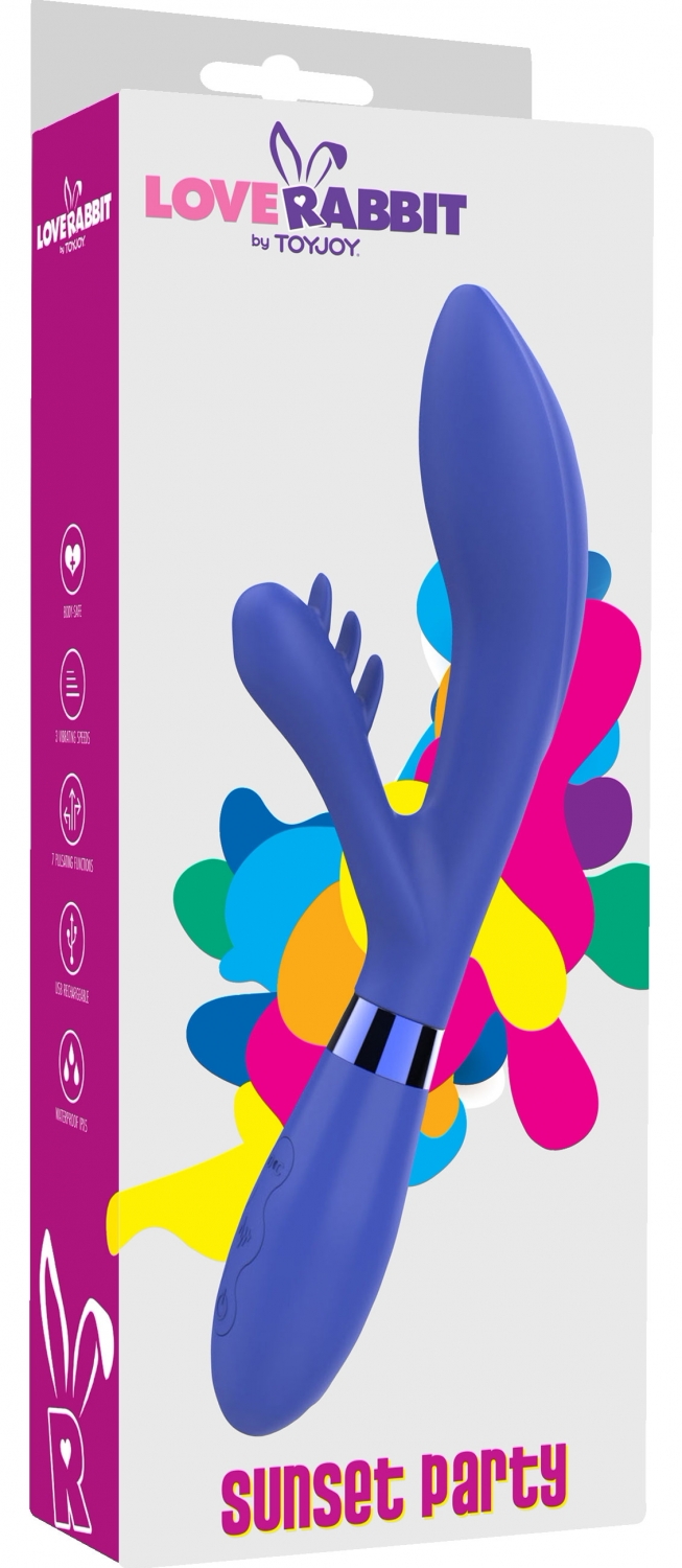 Sunset Party Vibrator din colecția Love Rabbit by TOYJOY este sexy, obraznic și este prevazut cu un ax maleabil stimulator clitoridian. Mov. Lungime: 23cm, extindere inserabila: 10cm, Diametru: 3.8cm