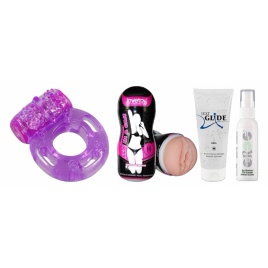 Redescoperiţi intimitatea cu un kit produs pentru senzaţii dominante şi confort: inelul cu vibraţii aduce stimulare direct partenerului şi clitorisului, lubrifiantul asigură glidare optimă pentru explorări anale minus disconfort, iar spray-ul păstrează totul igienic.