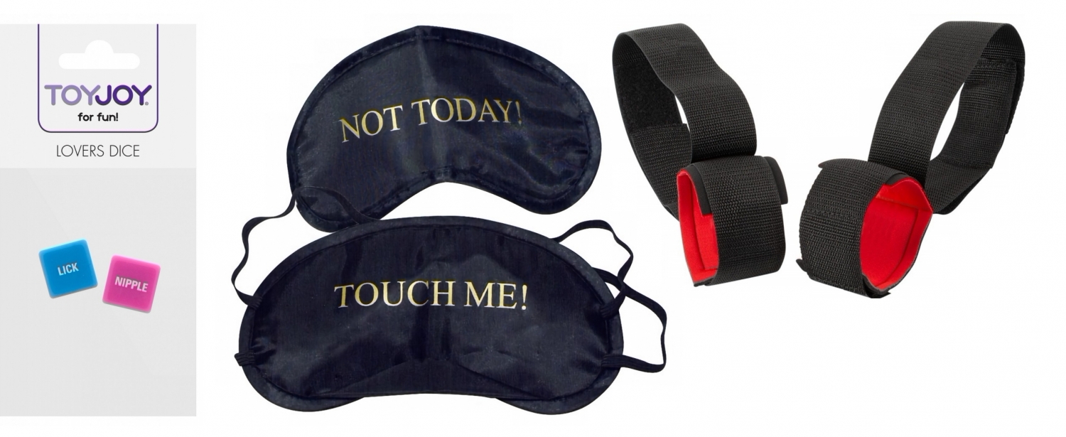 Cum le utilizați împreună: începeți prin a pune masca pentru a tăia vizualul și a amplifica celelalte simțuri. Aruncați zarurile pentru a decide acțiunile și zonele de stimulare; apoi uzați cătușele pentru a fixa ușor încheieturile sau gleznele, transformând fiecare atingere într-o experiență mai intensă. Comunicați constant și stabiliți un cuvânt de securitate — libertatea controlată conferă cele mai profunde senzații.