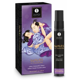 Atomizator Oral Shunga Waves of Pleasure cu aromă de fructe exotice, 20 ml. Conceput pentru a aduce un plus de savoare și confort în momentele intime cu contact bucal.
