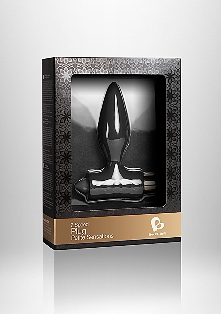 Rocks-Off Petite Sensations este un dop anal vibrabil făcut compact, din silicon ultra-moale, sigur pentru corp. Vârful conic ajută inserţia, iar baza în variantă de T se poziţionează stabil şi comod între fesă.