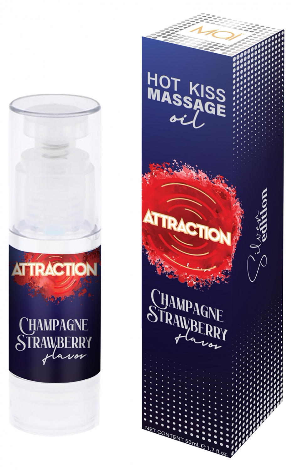 Uleiul/gelul de masaj Attraction cu aromă de șampanie și căpșuni este conceput pentru clipe intime, dând o textură potrivită pentru masaj și pentru contact oral. Formula vegană este sigură pentru piele și sărutabilă, ideală când vreți să transformați un masaj într-un preludiu cald.
