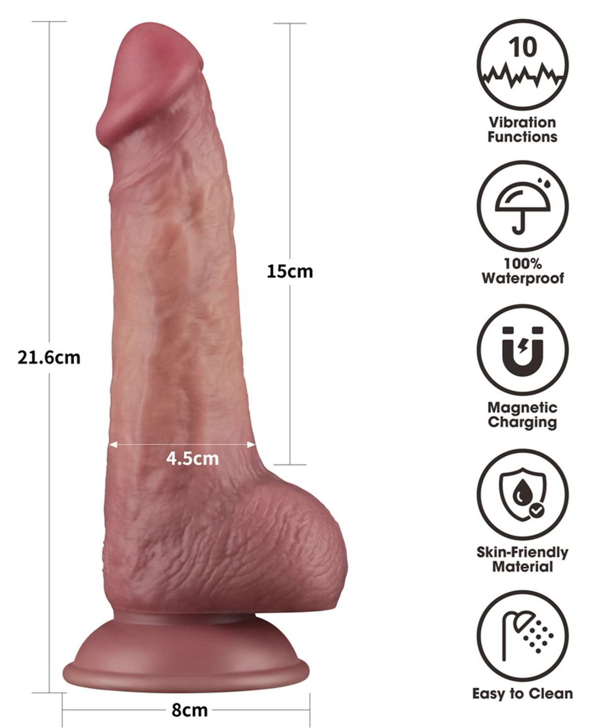 Descriere LoveToy Dual 21,5 cm – Densitate Dublă, 10 Vibraţii: