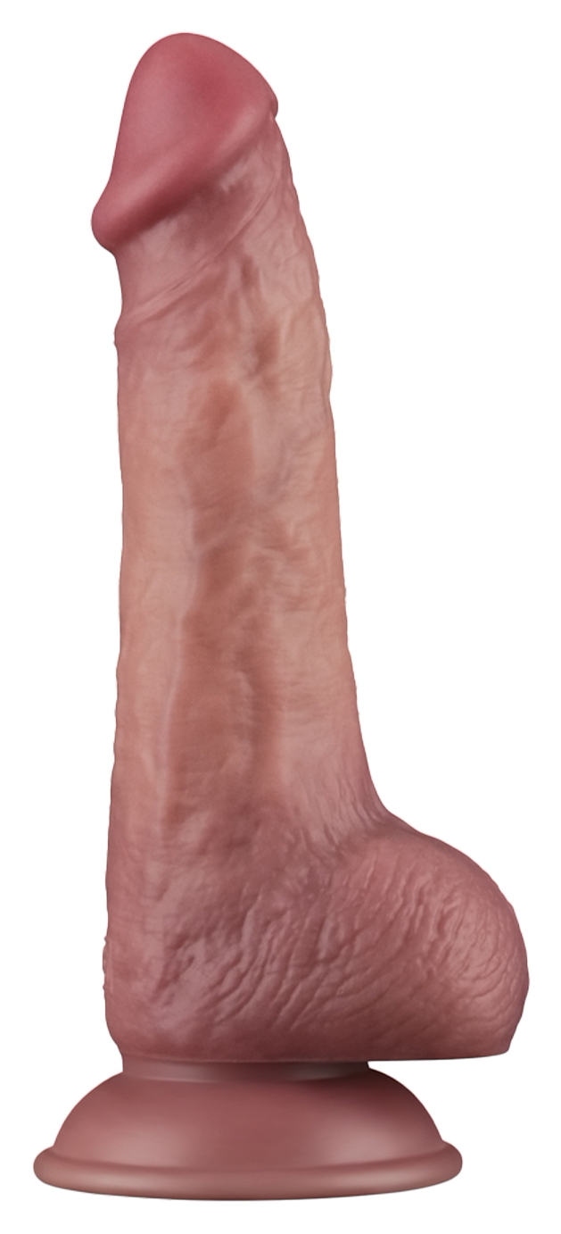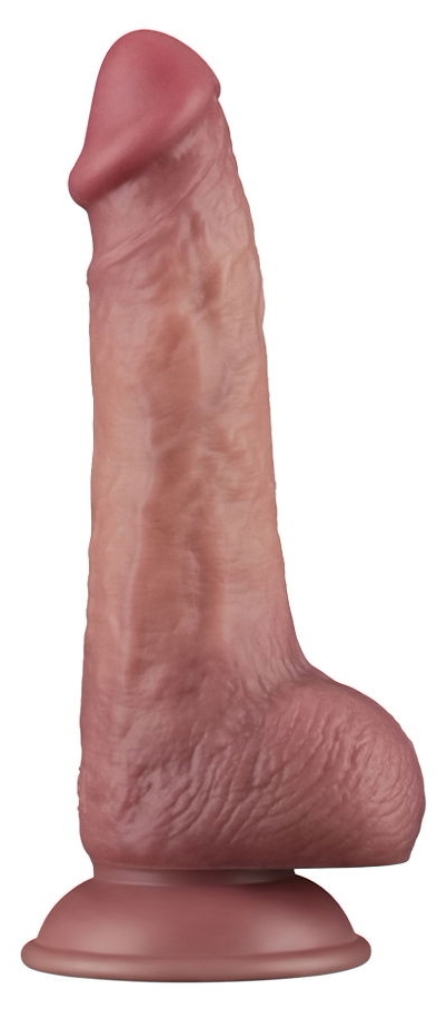 Miezul ferm transmite stabilitate, iar stratul exterior moale se simte natural la atingere. Textura venată şi capul uşor bombat înmulțesc stimularea.