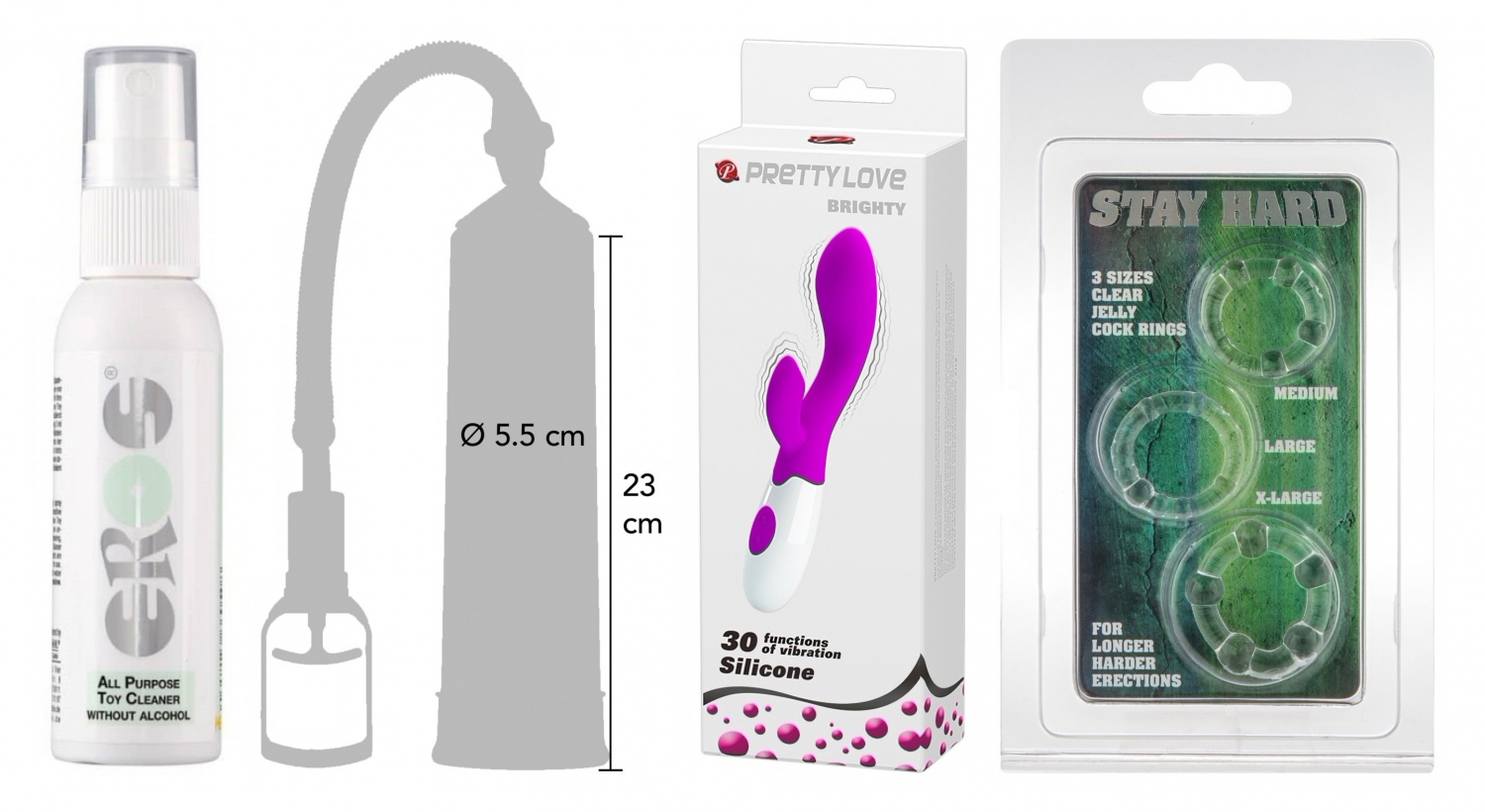 Combinarea acestor produse alcătuie un flux natural: pregătire (curățare), activare (pompă), stabilizare (inel) și orgasm personalizat (vibrator). Desăvârșit pentru cupluri sau pentru explorare solo, kitul îți oferă control, siguranță și intensitate — tot ce îți trebuie pentru nopți mai încărcate de satisfacție.
