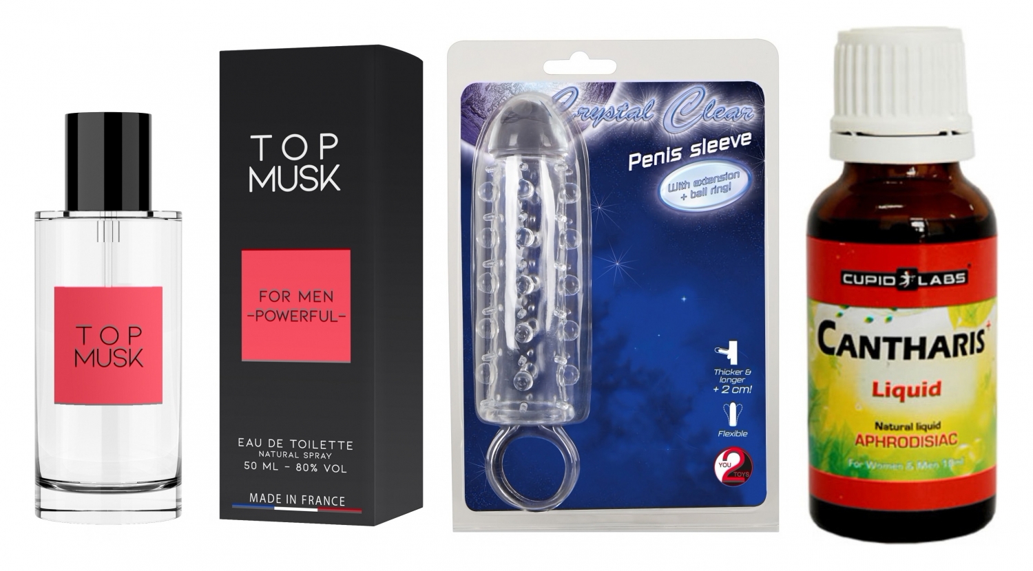 Cum să le folosești împreună: Aplică 10–15 picături din Cantaridă în indiferent ce lichid sau direct sub limbă cu aproximativ 30 de minute cândva de contact (maxim 2 sesiuni în 24 h). Pulverizează feromonii cu moderație pe punctele calde (ceafă, încheieturi) cu puțin timp înainte de întâlnire. Integrează prelungitorul în preludiu sau în momentul momentului pentru stârnire suplimentară; inelul asigură fixarea și stabilește o senzație atrăgătoare de presiune.