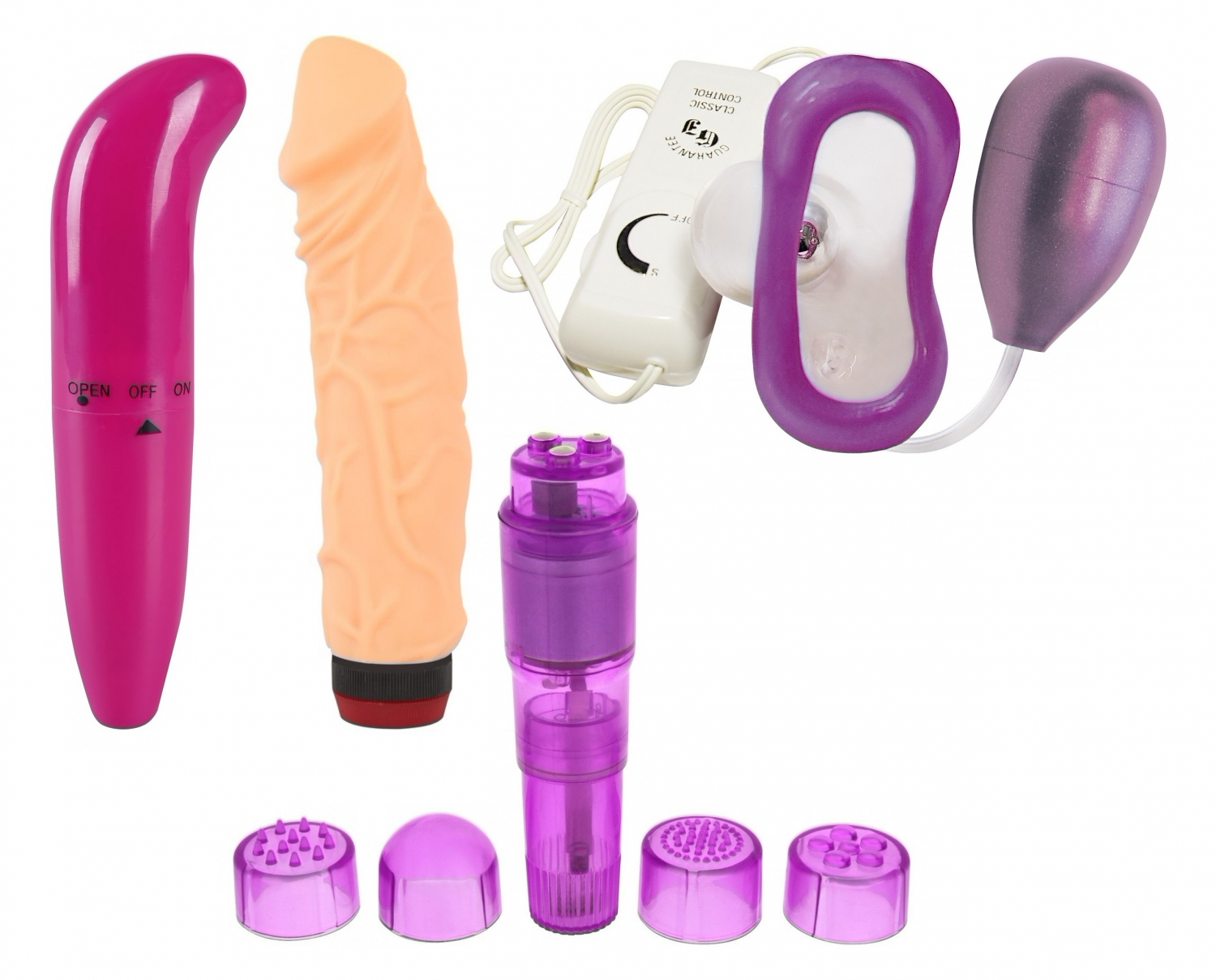 - Pompă cu sucțiune și vibrații (masatorul clitorisului): cupă care mărește circulația și sensibilitatea, combinată cu vibrații controlabile și telecomandă; lungime 6 cm, diametru 2 cm, material ABS/PVC, urmare de sucțiune pentru stimulare concentrată a clitorisului.