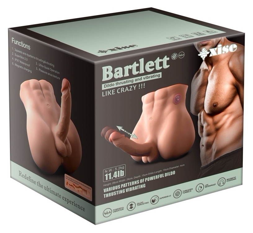 Masturbatorul Barlett de la Mistress asociază substanțe moi cu funcții practice pentru întrebuințare comodă și control. Bucată în formă de penis se poate îndoi la 360° pentru poziționare rapidă, iar carcasea din TPE acordă o textură „flesh” apropiată de piele.