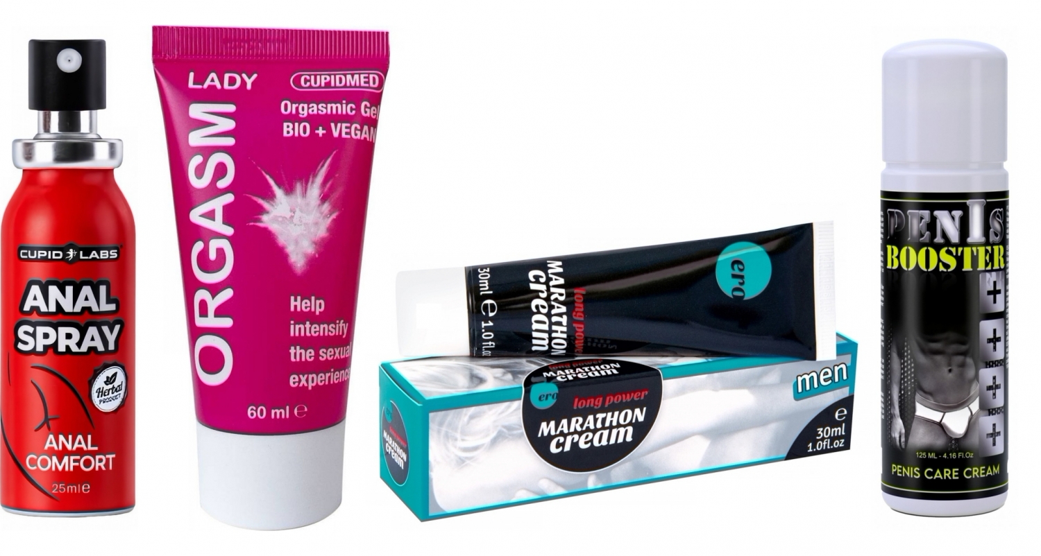 Cum le utilizați împreună: porniți cu gelul pentru ea, alternați atingerea și stimularea; aplică apoi crema pentru potență pe partener și așteptați absorbția; dacă intenționați penetrare anală, folosiți spray-ul pe zona receptivă și adăugați material lubrifiere generos. Folosiți prezervativ dacă vreți să evitați transferul produselor între parteneri.