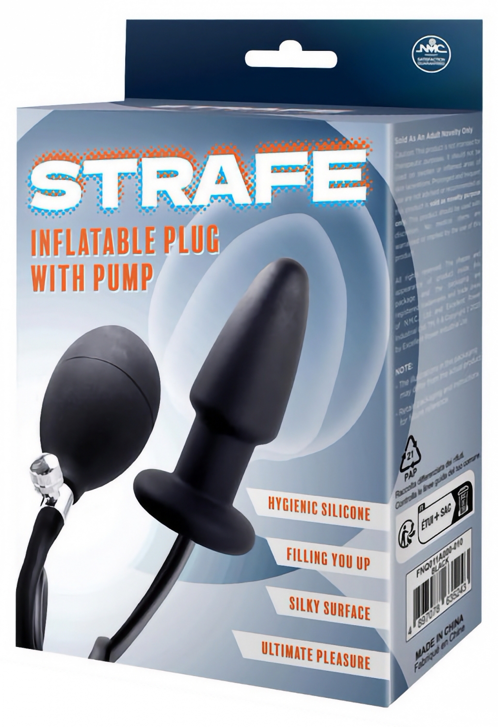 Plug-ul gonflabil Nmc oferă control pas cu pas al volumului prin pompa atașată și supapa de evacuare. Forma clasică, ergonomică, și suprafața neted facilitează inserarea confortabilă și relaxarea treptată a mușchiului sfincterian. Produsul este unisex și se adresează utilizatorilor care preferă reglaje precise.