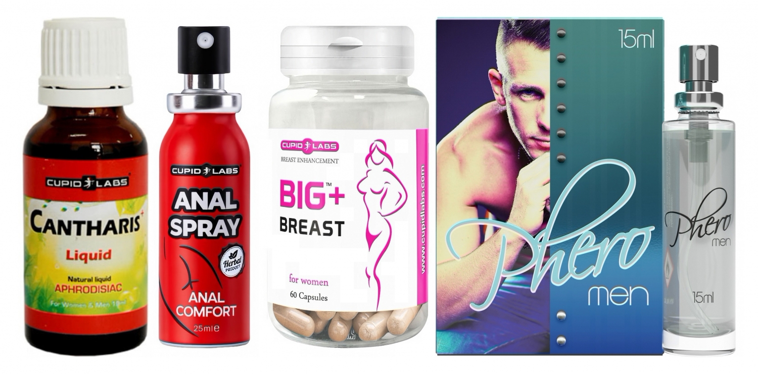 Picături afrodisiace Cantharis Plus (20 ml, Cupid Labs): stimulator normal al apetitului pentru bărbați și femei. Se pun 10–15 picături în băutură sau sub limbă cu aproximativ 30 de minute cândva de contact; mare două sesiuni în 24 de ore. Produsul acordă un impuls repede de energie și dorință, desăvârșit pentru serile în care vreți tărie imediată.