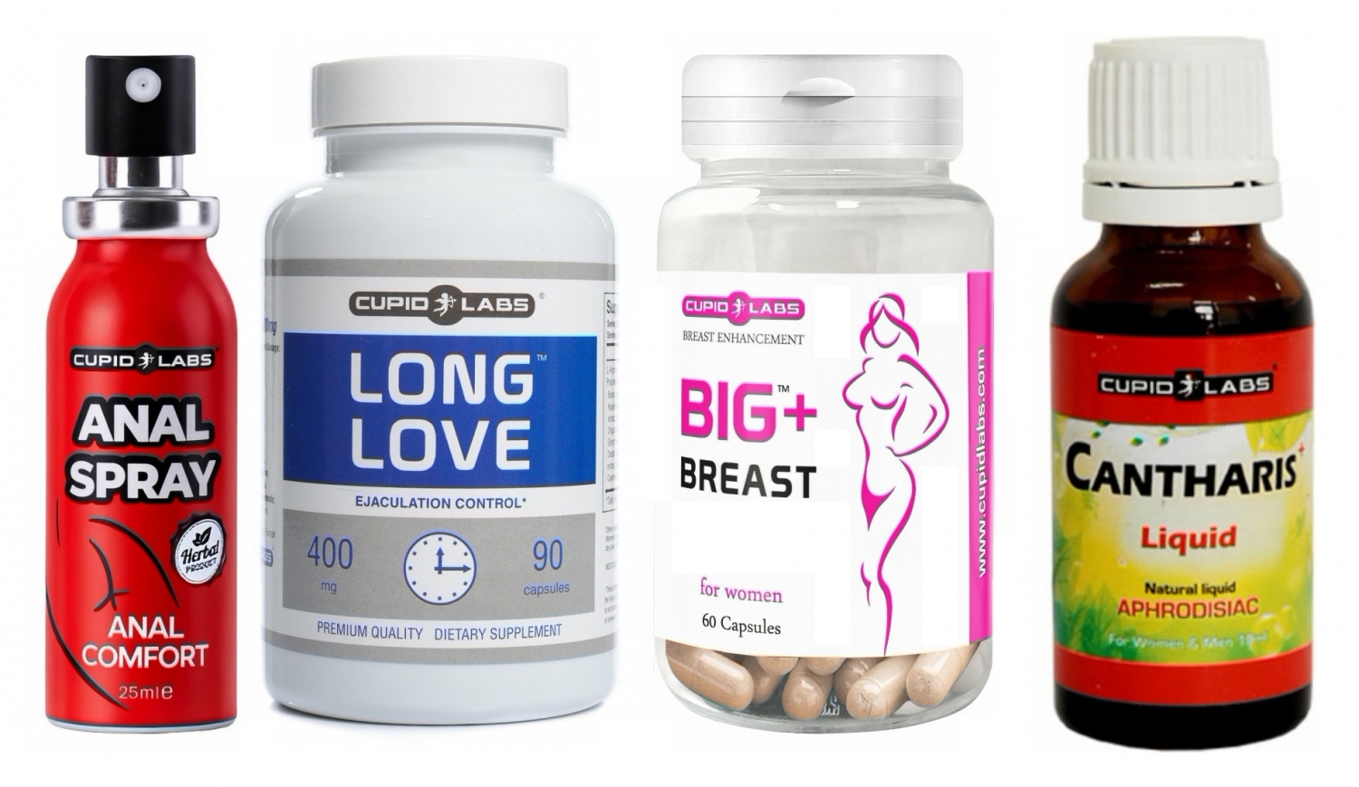 - Cantaridă Plus (20 ml): picături afrodisiace unisex, cu acțiune rapidă asupra libidoului și energiei sexuale; dozare controlată, consecință vizibil în cam 30 minute.