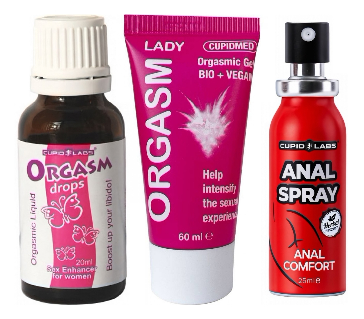 Un trio conceput pentru clipe intime în care vreți control, confort și intensitate. Asocierea aceasta urmărește să pregătească corpul și mintea: picăturile extind dorința cu până la 30 de minute înainte, gelul amplifică trăirile în timpul preludiului, iar spray-ul asigură o penetrare mai relaxată.