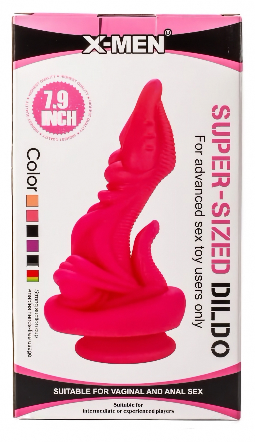 X-Men 7.9 este un penis artificial supradimensionat, discret și robust, realizat din PVC prietenos cu pielea. Lungime globală 20 cm şi calibru 5 cm, cu suprafață texturată și finisaj neted care dăruiește stimulare plăcută. Nu are motor și nu furnizează vibrații; ventuza puternică aduce stabilizare stabilă pe suprafețe plane pentru utilizare hands-free. Unisex, recomandat atât pentru masculi cât și pentru femei.