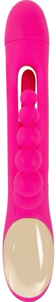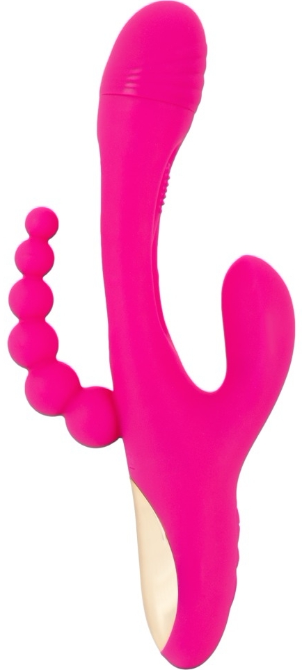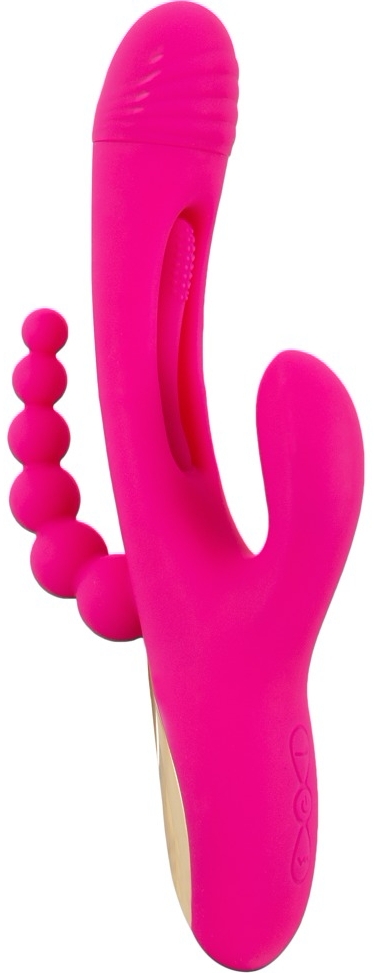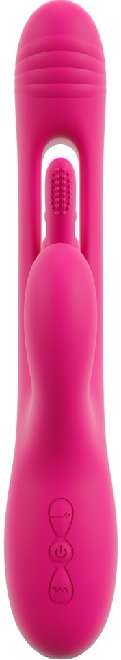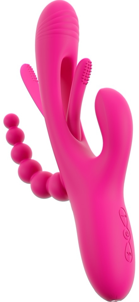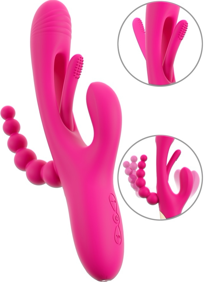 Triple Vibe Flicking de la Sweet Smile îmbină tehnologie și design ergonomic pentru stârnire triplă: interior, clitoris și zonă anală. Trei brațe cu motoare independente asigură putere constantă și funcționare discretă. Flicking Tongue, cu textură punctată, execută mișcări ritmice pentru impulsuri delicate, iar capul și cele două stimulatoare externe adaugă vibrații profunde.