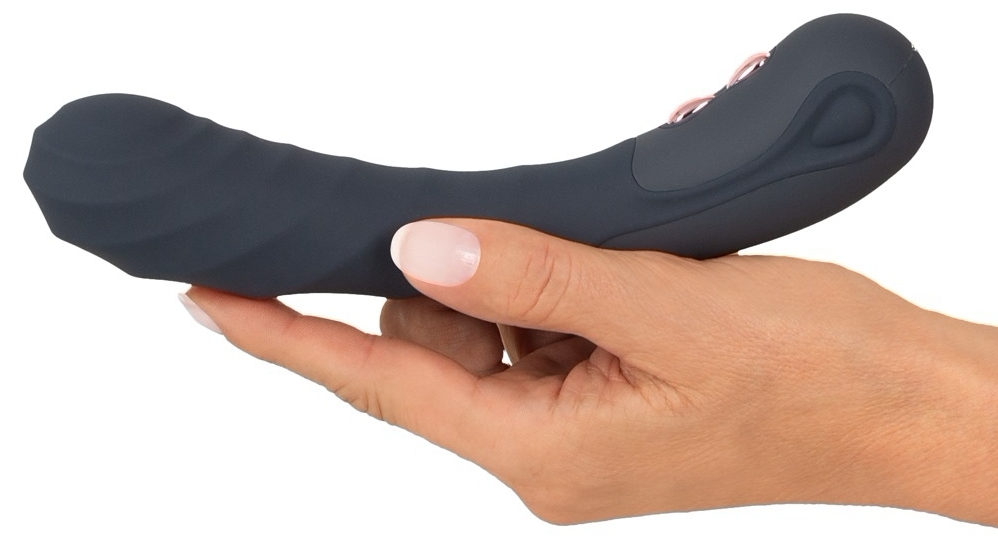 Design curbat și cap mare canelat, conceput pentru stârnire precisă a punctului G. Capul transmite vibrațiile în mod concentrat, pentru un contact eficient.