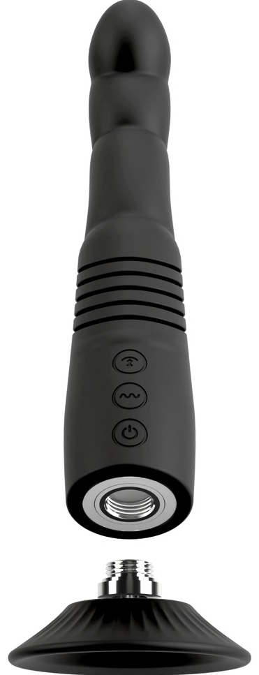 Ventuză detașabilă previne penetrarea excesivă la utilizarea anală și se fixează pe suprafețe netede pentru sesiuni hands‑free. Ventuza îngăduie și montarea rapidă în harness/strap-on. Bunul este reîncărcabil prin cablu USB inclus.