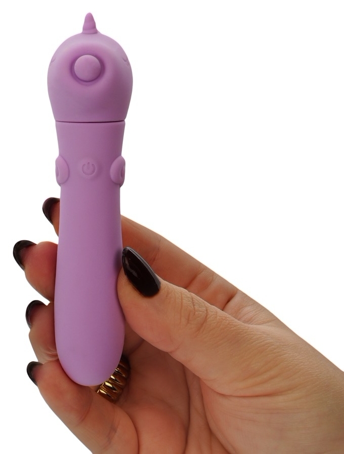Unihorn Karma Lilac este un mini vibrator cu estetică în formă de unicorn, compact şi uşor de folosit. Oferă vibraţii puternice în 10 moduri, comutabile necomplicat printr-un singur buton. Suprafaţa din silicon extrem de jelly asigură confort şi mângâiere plăcută.