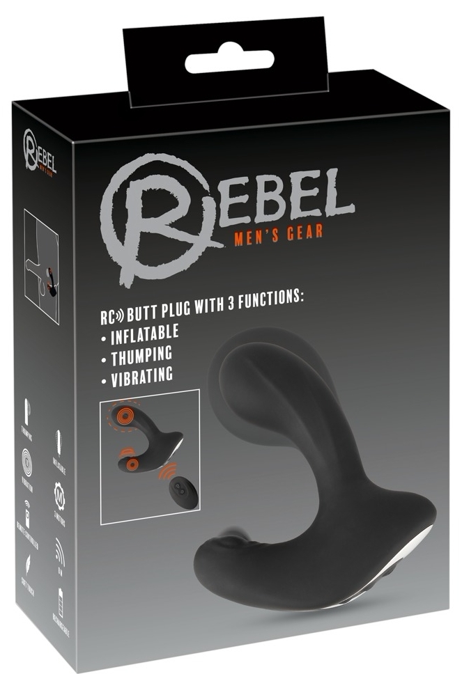 Plug anal gonflabil Rebel, proiectat pentru control precis şi întrebuințare discretă. Are trei motoare independente şi 10 chipuri de vibraţie/pulsare, plus o bază pentru stimularea perineului. Umflarea la apăsarea unui buton dăruiește senzaţie de plin şi permite ajustare progresivă.