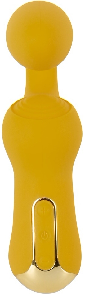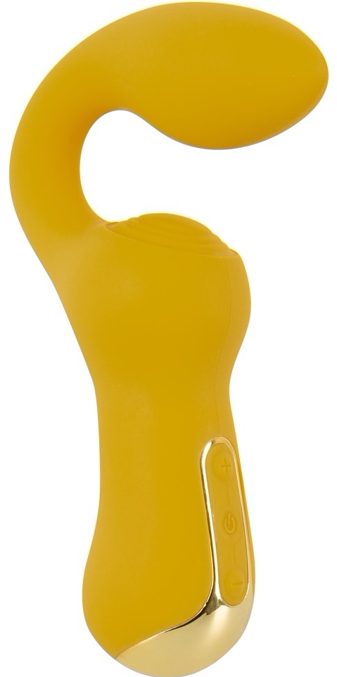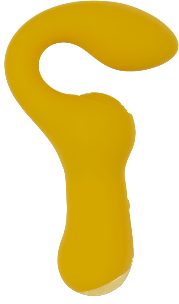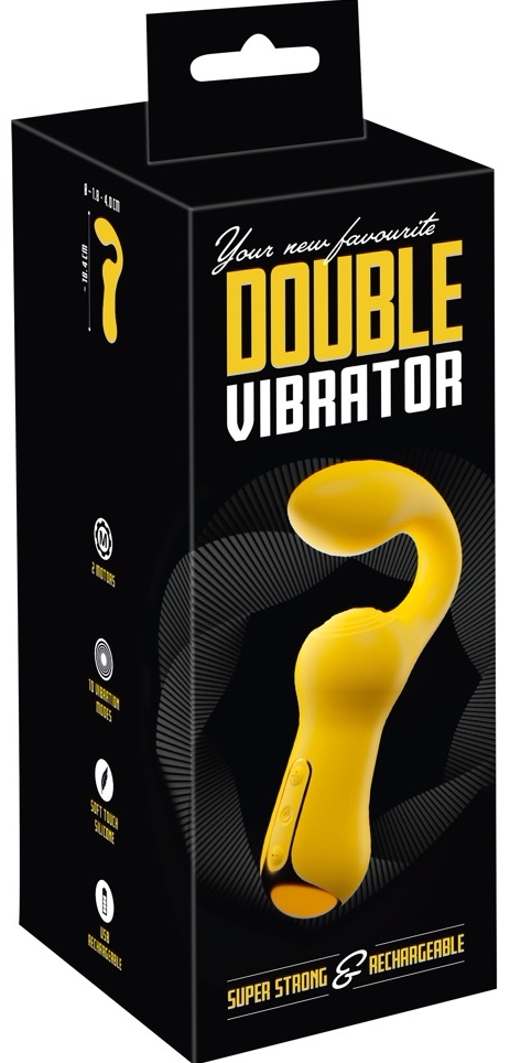 Dublu vibrator proiectat pentru stârnire simultană: gât flexibil, curbat, care dăruiește frecție intern intens, și un cap proeminent care transmite zvâcniri directe spre clitoris. Designul galben este practic și discret, fără greutate de manevrat.
