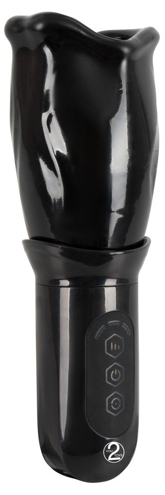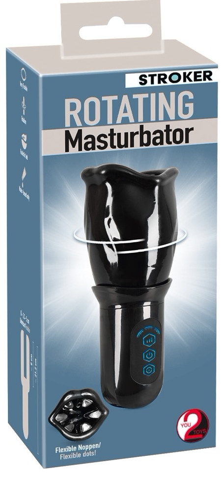 Masturbatorul care se rotește Stroker propune stimulare precisă printr-o manșetă moale, în formă de gură, echipată cu numeroase limbi flexibile care masează capul penisului.