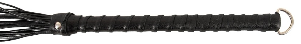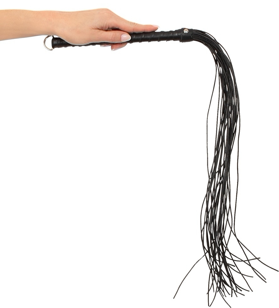 Flogger ZADO din epidermă naturală, extindere nealterată 70 cm, conceput pentru aplicări comandate și consecvente. Curelele rotunde și subțiri, cu vârfuri ascuțite, asigură un impact clar și simplu de gestionat, iar linia păstrează un formă discret și îngrijit.