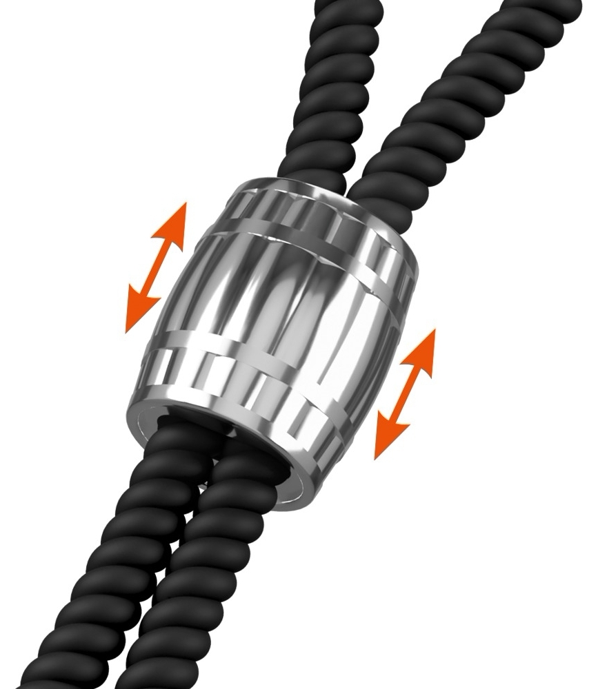 Heavy Rope de la Rebel este un inel reglabil, proiectat pentru a asigura control și ajustare precisă. Asocierea dintre siliconul elastic și mărgea metalică glisantă pune accent pe manevrabilitate și fiabilitate.