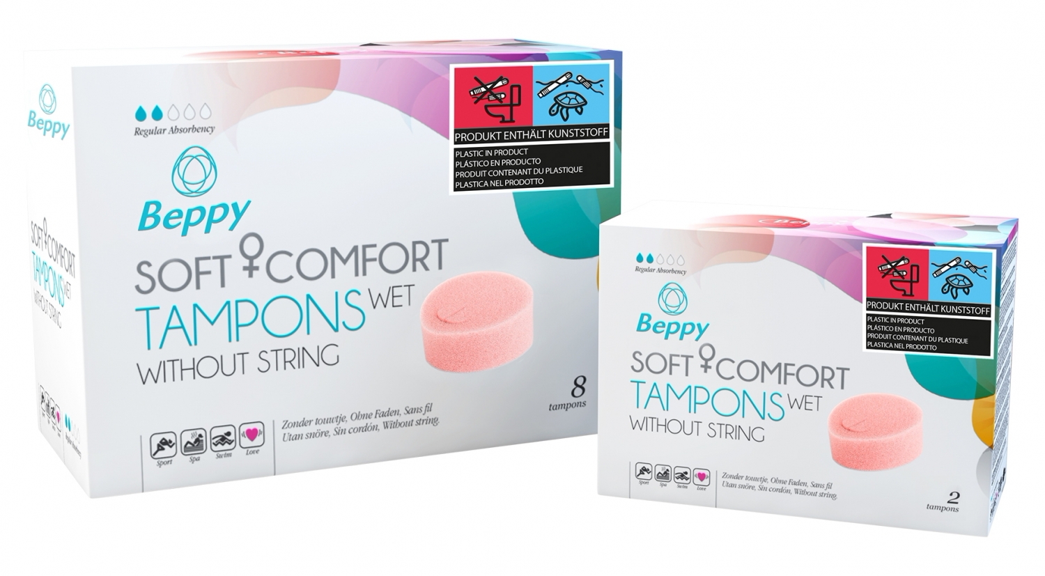 Beppy Soft Comfort Wet este un tampon intern din spumă poliuretanică, proiectat pentru protecţie discretă în perioada menstruală. Varianta Wet conţine gel lactat care facilitează inserarea şi asigură senzaţie uşoară de umiditate pentru manevrare mai confortabilă.