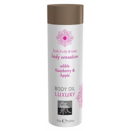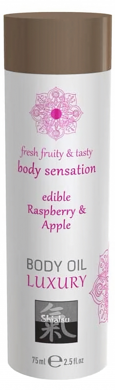 Uleiul de corp comestibil Shiatsu cu aromă de zmeură și măr vine într-un flacon compact de 75 ml. Textura sa fină alunecă facil pe piele, punând la dispoziție un masaj plăcut și un gust delicat atunci îndată ce este întrebuințat în contact direct.