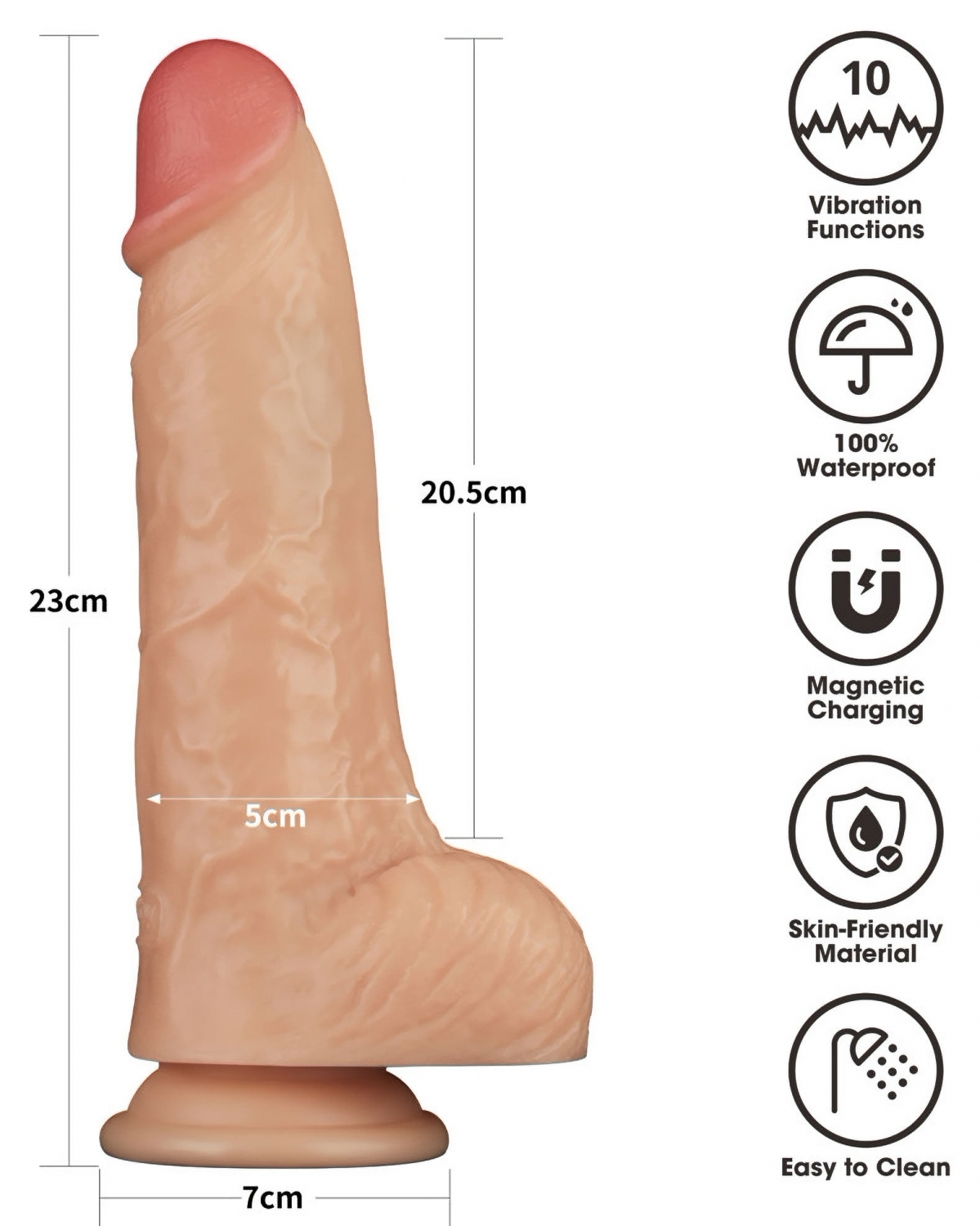 Dispune de 10 feluri de vibrație pentru variație rapidă, bază cu sucțiune stabilă pentru întrebuințare hands-free și este 100% impermeabil — potrivit pentru duș sau cadă. Este reîncărcabil prin USB și are finisaj fără greutate de curățat.