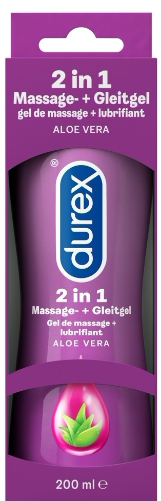 Gel Durex Play pe bază de apă, cu vitamina E și arome de aloe vera, pentru aplicare pe întregul corp - nu este lipicios și nu lasă urme de grăsime. Furnizează pielii catifelare și o face fin și mătăsoasă. Poate fi întrebuințat ca lubrifiant pentru raportul genital și anal. Verificat dermatologic. Este format din un parfum delicat. Are o mireasmă foarte de desfătătoare și poate fi utilizat atât cu prezervative cât și cu jucării erotice.