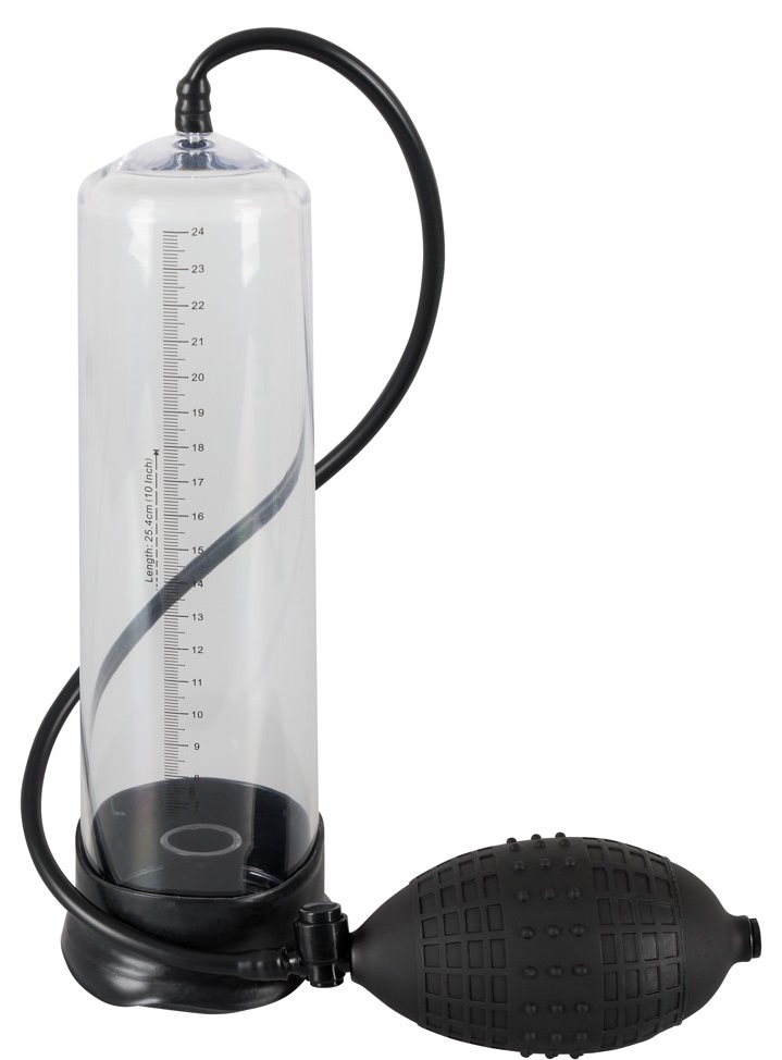 Descoperă plăcerea antrenamentului potenței! Pompă pentru penis transparentă, cu un manșon negru și o minge de pompare practică. Poți vedea cât de mult a crescut membrul tău prin scala inclusă. Cu o supapă de presiune sigură. Cilindrul are aproximativ 25 cm lungime. Material: ABS, TPE (manșon), PVC (mingea de pompare). Investește într-o experiență unică și intensă!