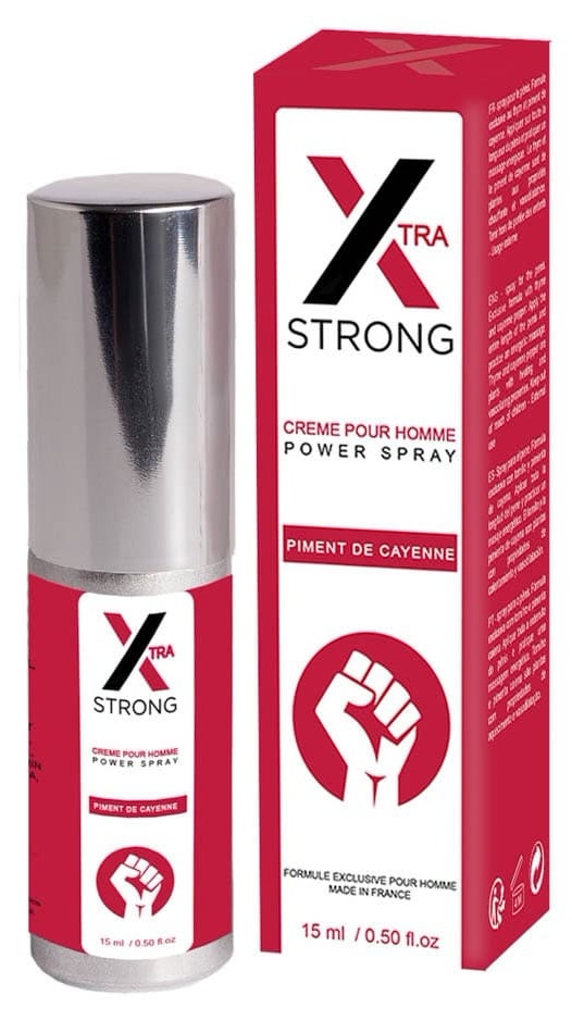 X Strong Membru Power este un spray de masaj stimulant pentru mădular conținând efectul de a intensifică dorința sexuală. Pulverizează o dată sau de două ori pe falus și freacă în cercuri mici pe gland. întrebuințare externă.