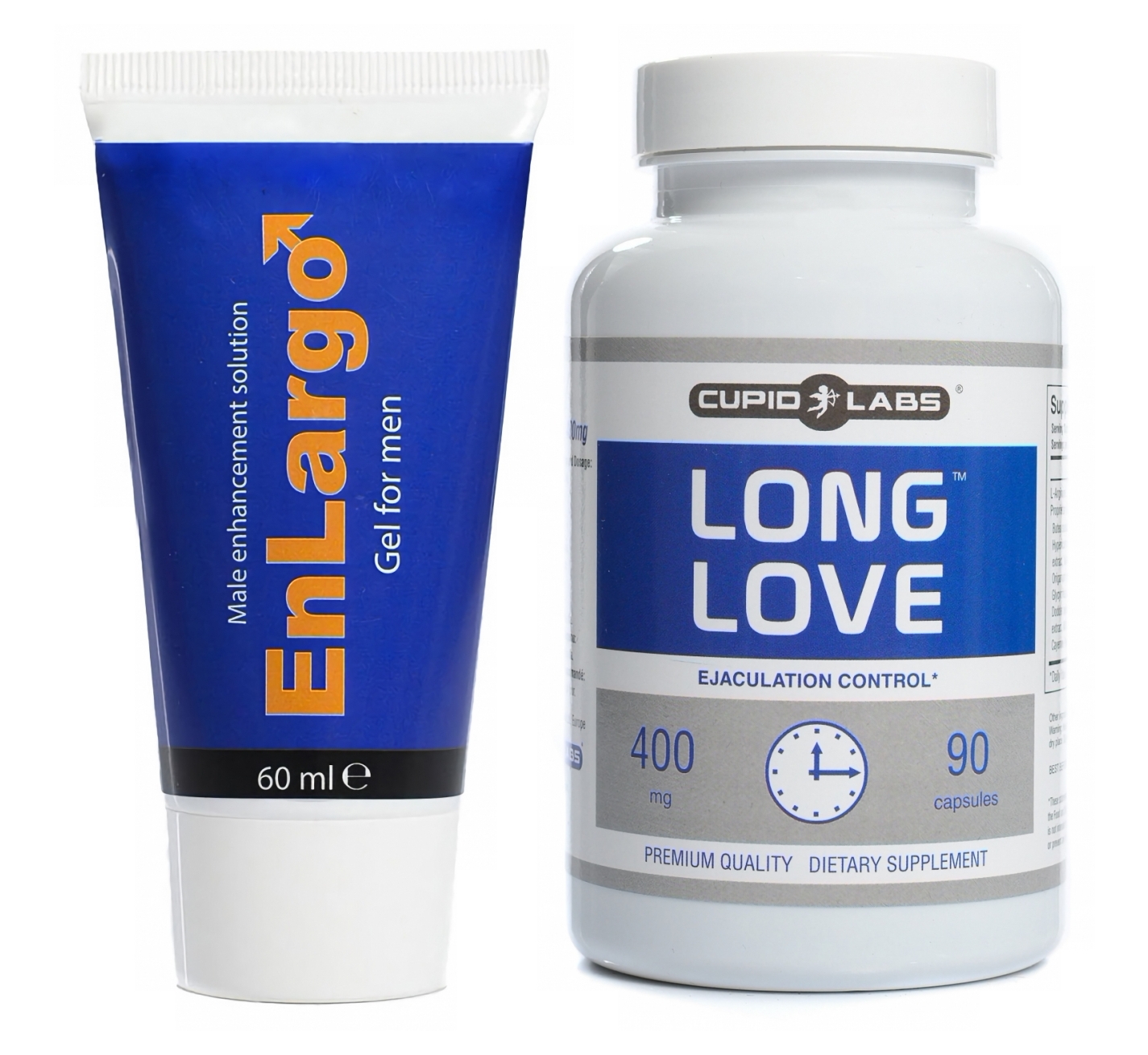 Descriere Pachet Cremă Mărirea Penisului Enlargo 100ml + Pastile Ejaculare Precoce Long Love 90buc: