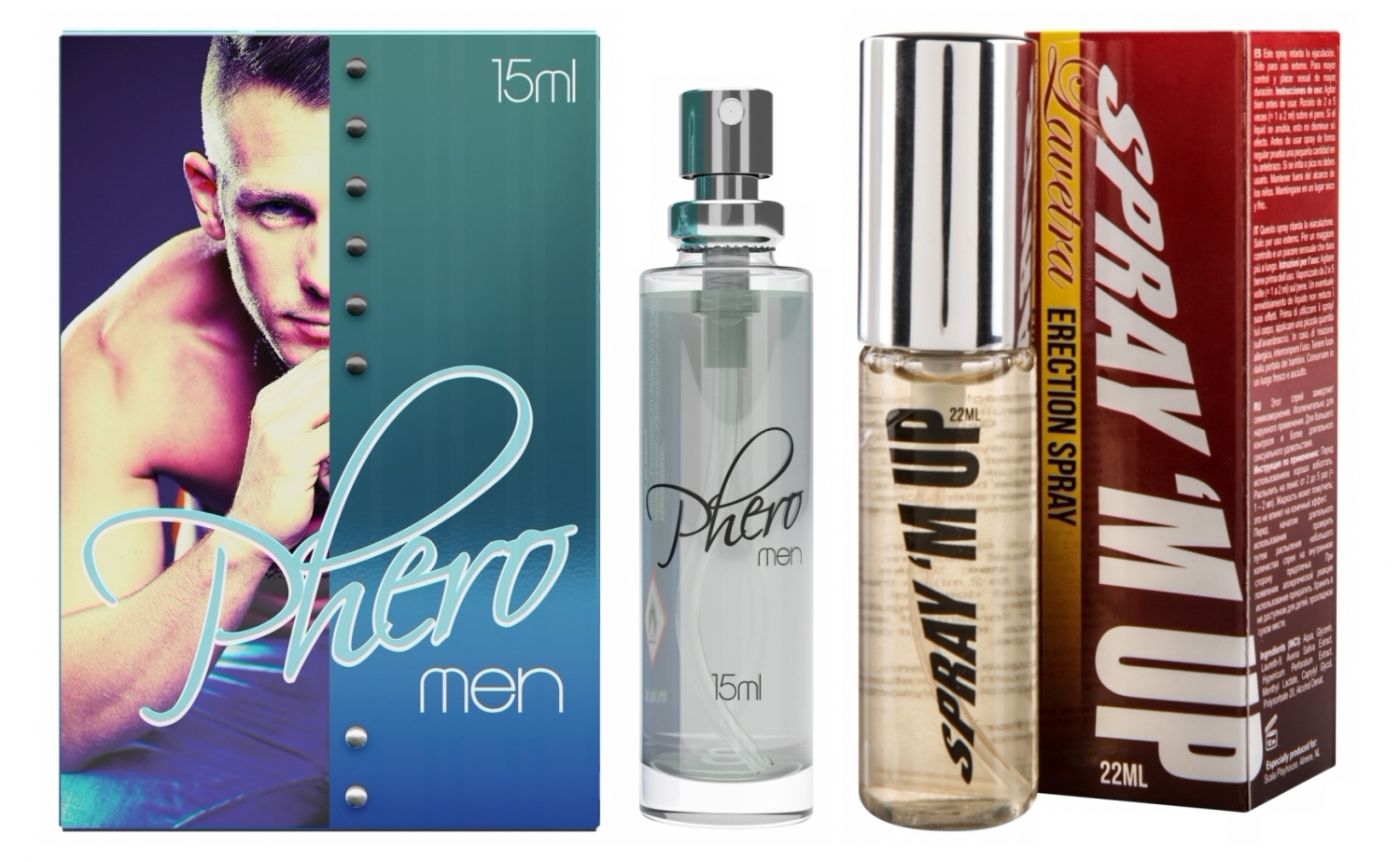 Descriere Pachet Parfum cu Feromoni Pheromen 15ml + Spray Erecție Spray M-Up 22ml: